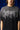 Polera con mangas caídas / Grabillado + focalizado para crear efecto en tela / Estampado serigrafía + aplicación de remaches /