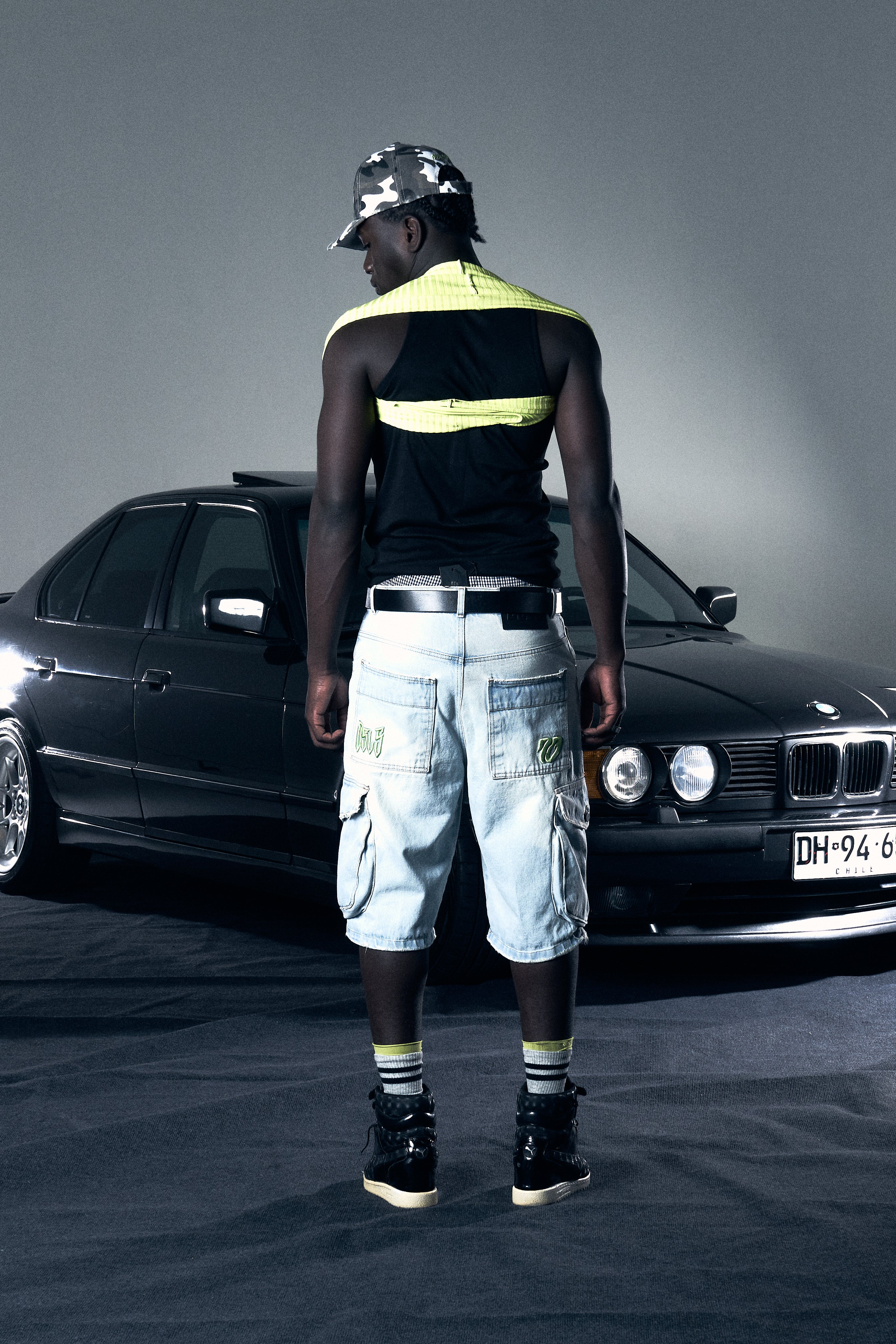 Short bajo la rodilla / Estilo cargo con 6 bolsillos / Pretina con broche y cierre / Etiqueta eco-cuero exterior con logo 3D / Bordado en color verde en ambos bolsillos / Procesado con grabillado y focalizado