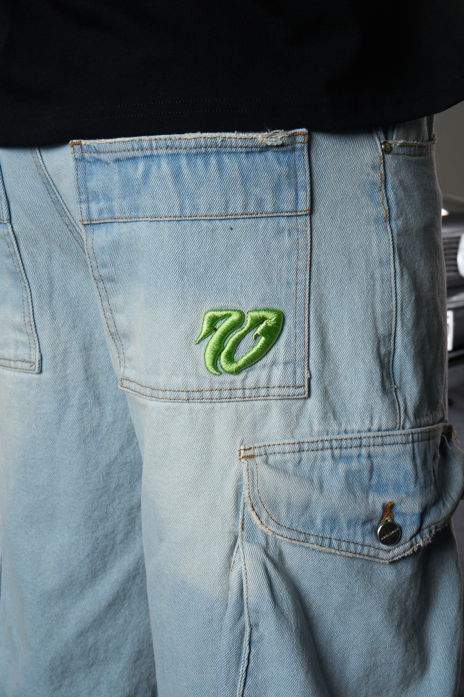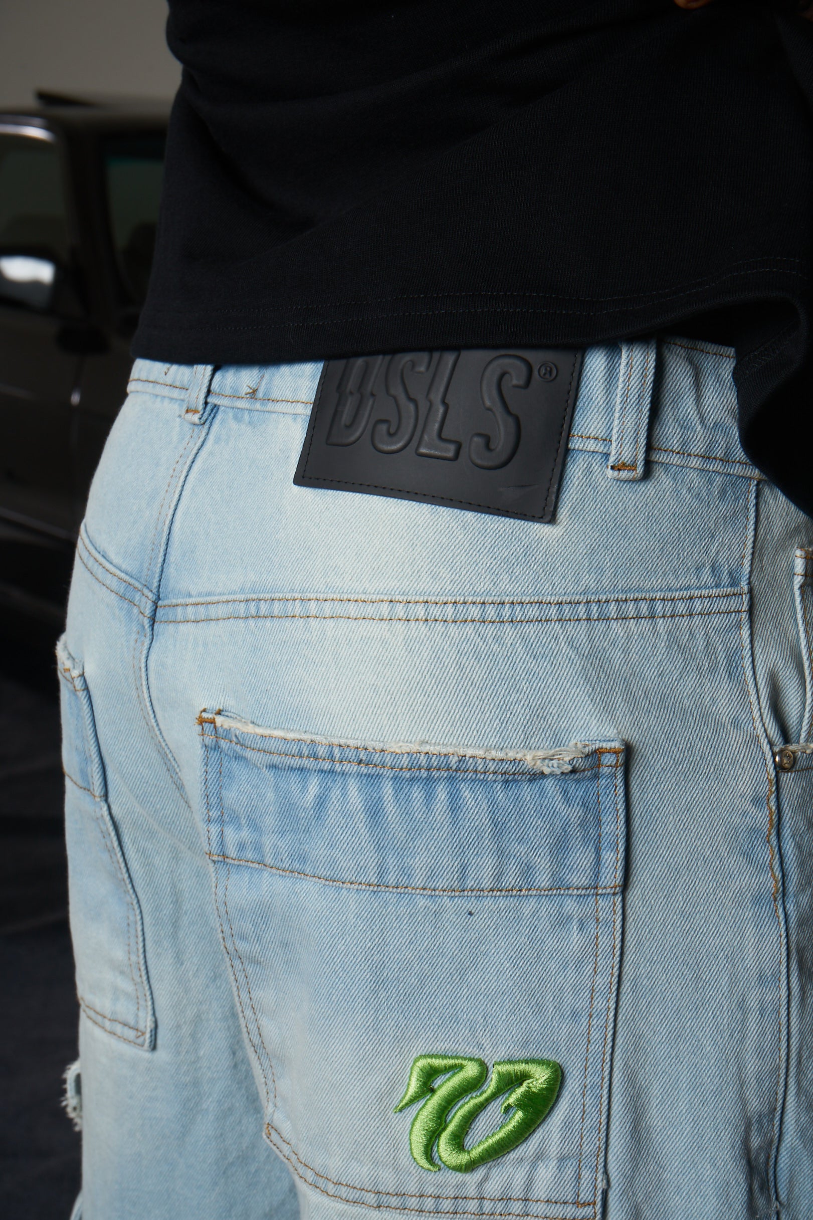 Material: Mezclilla (100% Algodón) Color: Celeste deslavado Tipo calce: Baggy-fit cargo