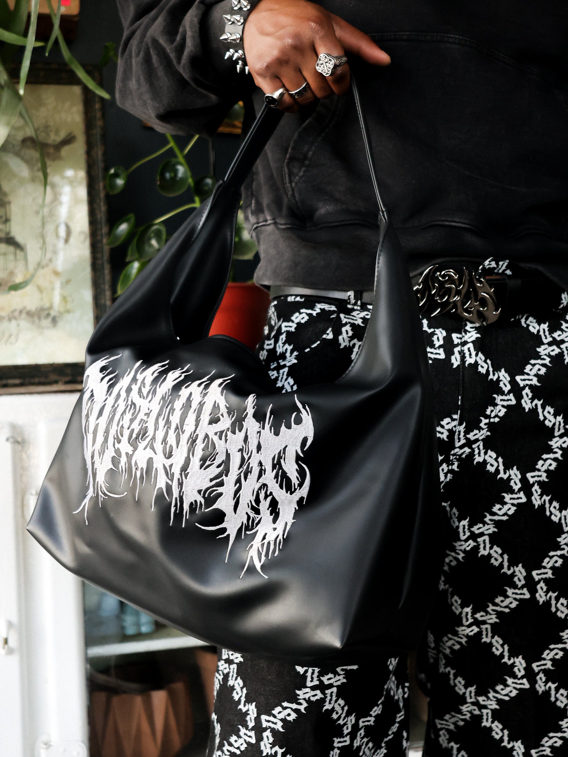 Bolso de hombro / Bordado en delantero / Cierre YKK / Impermeable